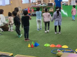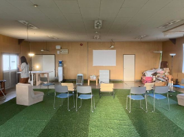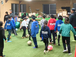 人工芝を敷いたスペースでウォーキングサッカーや